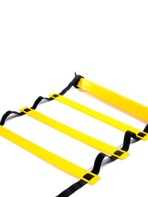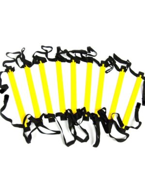 Drabinka koordynacyjna z możliwością regulacji odstępów między szczeblami pozwala na dostosowanie drabinki do wieku i zaawansowania osób ćwiczących. Żółty, jaskrawy kolor szczebli pomaga podczas ćwiczeń przeprowadzanych o zmroku i przy sztucznym oświetleniu.