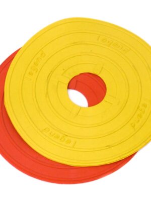 Zestaw 12 markerów znaczników podłogowych marki Legend w dwóch kolorach: czerwonym i żółtym.