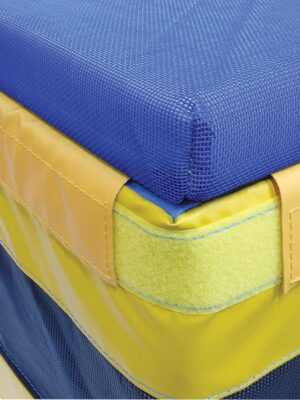 Zeskoki jedno segmentowe, góra wykonana ze specjalnego materiału PCV jednostronnie powlekanego, boki z zastosowaną w środku siatką odpowietrzającą  zapewniającą swobodną cyrkulację powietrza a spód z materiału antypoślizgowego, w standardzie również mocne uchwyty do transportu. Charakterystyczna konstrukcja (komorowa) i wykonanie wkładu z wysoko gatunkowej pianki PU, gwarantują doskonałą amortyzację i stabilność materaca podczas użytkowania.